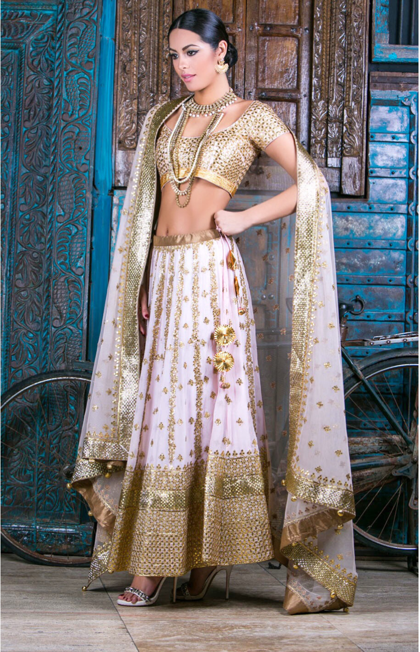 Nidhi Tholia the label is known for combining the best colour together for the perfect festive and wedding wear. Every piece created here is enhanced with intricate gota-work with bright effervescent hues.